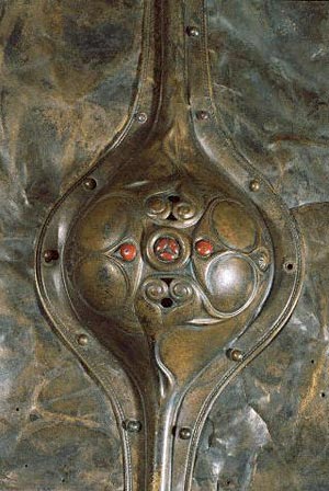 Датировка около 3 века до н.э. Центральная часть щита украшена кораллами. Этот щит, вероятно, был церемониальным. Британский Музей, Лондон.